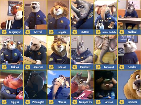 The zootopia police officers are a group of anthropomorphic mammals who work for the zootopia police department in disney 's 2016 animated feature film, zootopia. Products children's games outdoor tables and chairs gardening indoor furniture pet house. Grizzoli is an officer for the zpd.